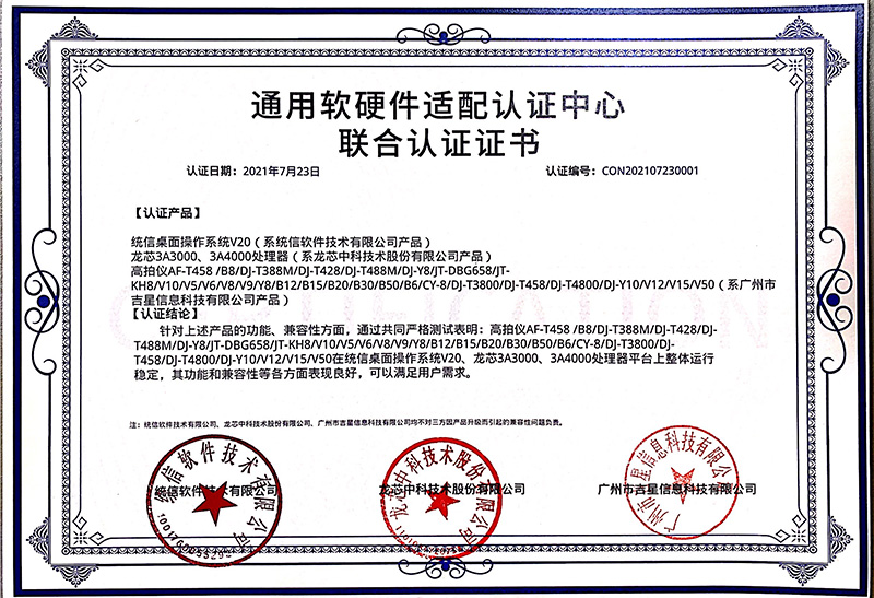 測試結果表明高拍儀滿足兼容認證要求,可穩(wěn)定高效運行于UOS操作系統(tǒng)中,兩者穩(wěn)定運行于龍芯、兆芯、海光的國產(chǎn)CPU平臺,兼容性良好、穩(wěn)定運行、性能卓越,能夠滿足用戶多樣化需求。
