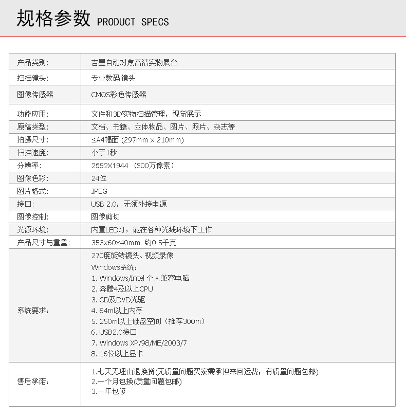 吉星便攜辦公助手500萬A4 AF-T458