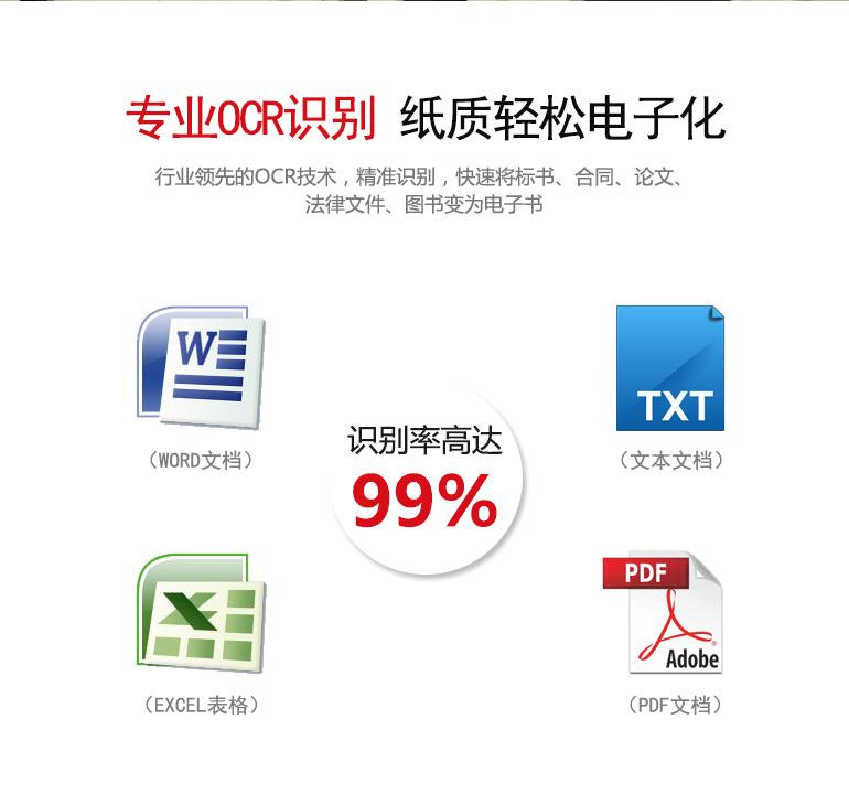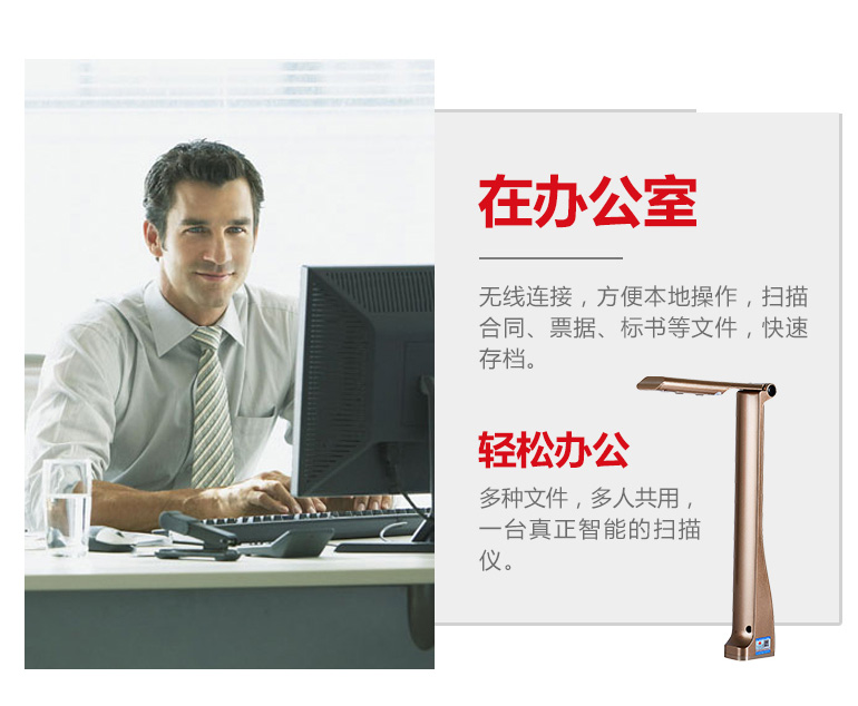 無線傳輸、手勢識別掃描、智能感應掃描、智能糾偏裁邊、OCR識別、視頻錄制等